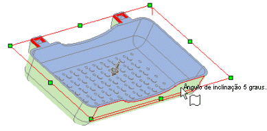 Inclinação negativa. Exibe as faces com inclinação negativa, com base no ângulo de inclinação de referência especificado. Uma inclinação negativa indica que o ângulo da face, em relação à direção de extração, é menor que o ângulo de referência.