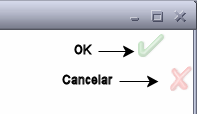 Clicar com o botão direito e selecionar OK ou Cancelar no menu de atalho.