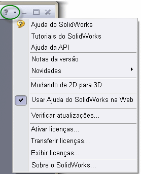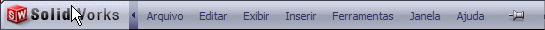 Os menus ficam visíveis passando o mouse ou clicando no logotipo SolidWorks. Você pode fixar os menus para torná-los visíveis o tempo todo. Quando os menus estão fixos, a barra de ferramentas move-se para a direita.