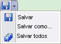 Clique na seta para baixo ao lado de um botão de ferramenta para expandi-lo e exibir um menu flyout com funções adicionais. Isto permite acessar a maioria dos comandos do menu Arquivo a partir da barra de ferramentas. Por exemplo, o menu flyout Salvar inclui Salvar, Salvar como e Salvar todos.