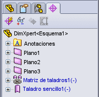 (barra de herramientas DimXpert) o en Herramientas, DimXpert, Esquema de acotación automática.