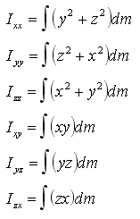 結果顯示在物質特性對話方塊中,主軸和質量中心以圖形顯示在模型中。是在同意下列定義的情況下計算慣性矩及慣性積: