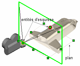 L'option Définir l'assiette par sélection est sélectionnée et le plan esquissé est utilisé pour contrôler la Rotation de la caméra.