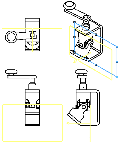 Le plan dans la vue isométrique va cacher les composants dans la direction de la flèche. Le plan et la flèche sont également affichés dans les autres vues pour vous aider à localiser les composants cachés.