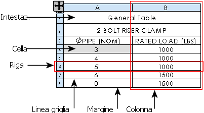 Una tabella consiste di celle sistemate in righe e colonne. Le celle possono contenere testo o dati che possono essere formattati individualmente.
