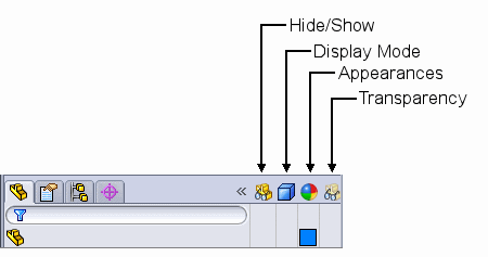 Il Pannello di visualizzazione appare a destra del pannello FeatureManager. Ci sono quattro colonne: