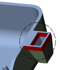 Richiede sformo. Visualizza tutte le facce che devono essere corrette. Si tratta delle facce con un angolo maggiore dell'angolo di riferimento negativo e minore dell'angolo di riferimento positivo.