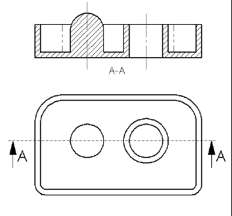 La vista in sezione mostra delle campitura sulle aree sezionate.