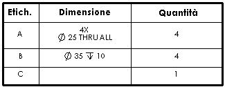 Specificare le etichette identificando i fori da rendere alfanumerici (A, B, C...) o numerici (1, 2, 3...). Con le etichette alfanumeriche, il prefisso lettera indica la dimensione di un foro specifica e il numero indica un'istanza. Usare Inizio per specificare una lettera o un numero iniziale.