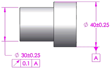 Osservare la differenza nelle tolleranze di forma applicate all'estrusione di 30 mm e la vista di annotazione utilizzata per rappresentarle.