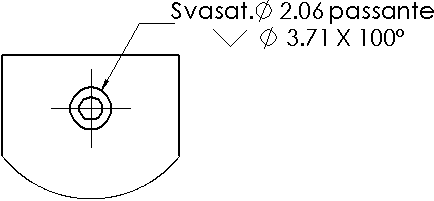 e la quota della profondità. Se il foro viene creato in Creazione guidata fori, la didascalia avrà informazioni aggiuntive (le quote di una svasatura o il numero di varianti del foro, ad esempio).