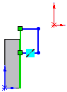 2) Inserire una nuova parte, tracciare un rettangono e creare una relazione complanare nel contesto tra la linea dello schizzo e il bordo del blocco grigio fisso.