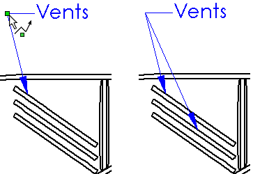 È possibile usare le linee di associazione a più scatti nei disegni per creare linee di associazione con tutte le curve desiderate, oppure per creare frecce semplici o diagrammi di blocchi. Ad esempio, una linea di associazione a più scatti, può indirizzare una nota su un'entità di un disegno che sarebbe difficile da raggiungere con una linea di associazione diritta o piegata. Ecco alcune cose da notare sulle linee di associazione a più scatti: