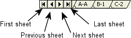 nei disegni con più fogli che spaziano lungo la lunghezza dello schermo, usare i bottoni di navigazione nella parte bassa del disegno per saltare al primo o all'ultimo foglio.