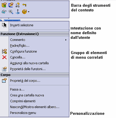 Per vedere i menu, fare clic con il tasto destro quando si porta il cursore sopra i menu: