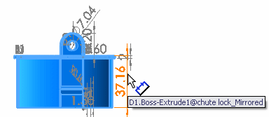 Quando si crea una parte specchiata o derivata, è possibile immettere le quote di schizzo e delle funzioni della parte originale. È possibile includere le quote referenziate nei disegni creati sulla base di parti specchiate o derivate.