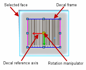 Una decalcomania può essere modificata usando il PropertyManager Decalcomanie o creare semplici modifiche manipolando la decalcomania nell'area grafica.