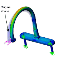 Ad esempio, per esaminare gli effetti provocati da una forza applicata al rubinetto, SimulationXpress simula il ciclo di progettazione e fornisce dei risultati di sollecitazione. Vengono anche evidenziate le aree critiche e indicati i livelli di sicurezza delle varie regioni del rubinetto. Sulla base di questi risultati, si potrà decidere se rafforzare le regioni deboli e asportare del materiale dalle aree sovradimensionate.