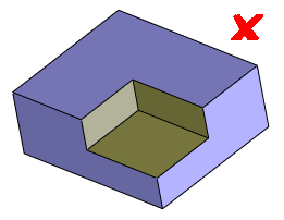 durante il disegno di uno spigolo interno a tre bordi, uno dei bordi interni deve avere il raggio della fresa. Un raggio dello spigolo generoso può accomodare un taglio della fresa più ampio, che è preferibile. Usare i raggi consigliati dal personale di fabbricazione per garantire che gli strumenti siano facilmente ottenibili e mantenuti.