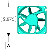 L'utente può preselezionare una quota o un simbolo di tolleranza di forma per allegare il simbolo di funzione Riferimento all'annotazione oppure potrà trascinare il simbolo della funzione Riferimento sopra il simbolo della quota o della tolleranza di forma dopo averla creata.