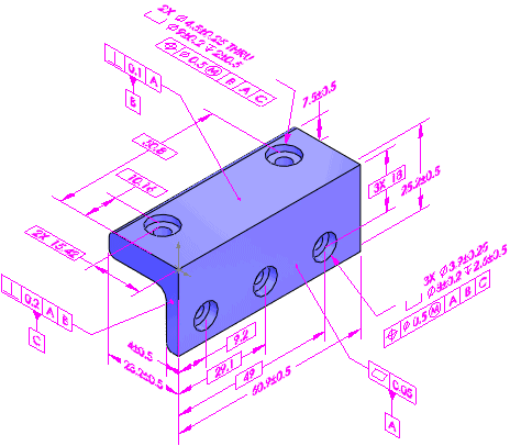 DimXpert per parti è un insieme di strumenti che si utilizzano per applicare quote e tolleranze a parti secondo i prerequisiti ASME Y14.41-2003 e ISO 16792:2006. Le tolleranze potranno quindi essere usate con