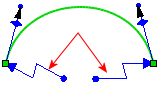 Questa opzione è disponibile solamente con spline a due punti comprendenti maniglie di manipolazione della curvatura.