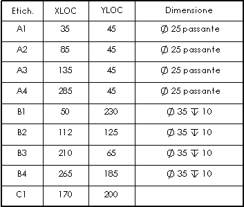 Specificare le etichette identificando i fori da rendere alfanumerici (A, B, C...) o numerici (1, 2, 3...). Con le etichette alfanumeriche, il prefisso lettera indica la dimensione di un foro specifica e il numero indica un'istanza. Usare Inizio per specificare una lettera o un numero iniziale.
