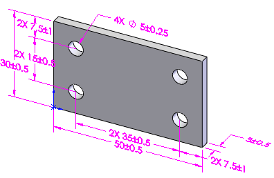 Se utilizzato insieme a Geometrico come Tipo di tolleranza, DimXpert applica tolleranze di posizione per collocare fori ed estrusioni.