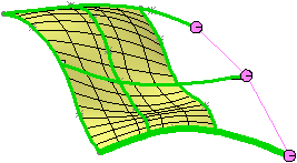 As curvas verdes de Direção 1 se prolongam além das curvas roxas de Direção 2