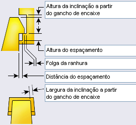 Para Largura da inclinação a partir do gancho de encaixe, a ranhura segue qualquer inclinação aplicada ao gancho de encaixe.