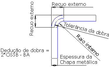 NOTA: Por definição, a tolerância de dobra é o comprimento do arco da dobra medido ao longo do eixo neutro do material.