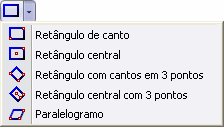 Para comandos como Retângulo, onde você pode desejar criar a mesma variante de retângulo repetidamente, o último comando usado torna-se o ícone do botão e é usado como padrão.