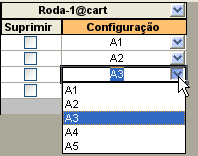 - Selecione os itens na lista de configurações de componentes ou de materiais de peças.