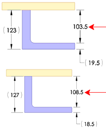Com a opção Tolerâncias de orientação desmarcada, os resultados terão um mínimo de 103,5 e um máximo de 108,5.