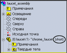 В верхней части дерева конструирования FeatureManager нажмите правой кнопкой мыши на имя детали, сборки или чертежа и выберите Отобразить дерево, Отображать имена конфигураций компонентов.