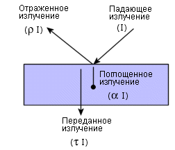 Следующее отношения связывает абсорбционную способность, отражательную способность и пропускаемость некоторой поверхности: a + r + t = 1.