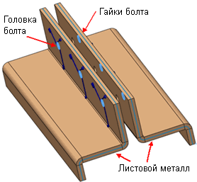 может соединять два компонента, несколько компонентов или компонент с основанием. Можно определить болты, проходящие через смешанный набор твердых тел, оболочек и тел из листового металла. Также можно определить болт, выбрав объекты одного и того же компонента.