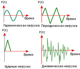 Динамические нагрузки обычно могут быть классифицированы как детерминированные или недетерминированные. Детерминированные нагрузки хорошо определены в качестве функции времени и могут быть точно прогнозируемы. Они могут быть гармоническими, периодическими или непериодическими. Если нагрузки детерминированные, результаты также являются детерминированными. Недетерминированные нагрузки не могут быть хорошо определены в виде явной функции времени и они лучше всего описаны статистическими параметрами. Если нагрузки недетерминированные, результаты также являются недетерминированными.