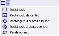 En los comandos como Rectángulo, donde es probable que desee crear repetidamente la misma variante del rectángulo, el último comando utilizado se convierte en el icono del botón y es el comando predeterminado utilizado.