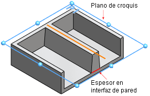 . Si agrega un ángulo de salida, puede configurar el espesor en el plano de croquis o en la interfaz de pared.
