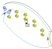 Equidistanciar curva. La distancia normal desde el origen de la curva seleccionada hasta la operación a repetir se mantiene para cada instancia.