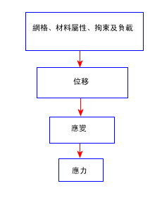 程式會使用應變結果及應力 - 應變關係來計算應力。