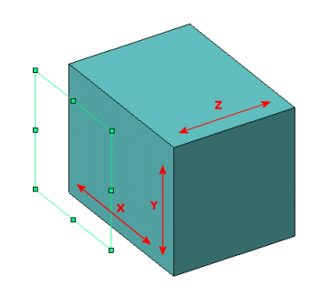 如為平面薄殼,選擇與薄殼平行的平面作為參考幾何。X 及 Y 軸位於平面上,Z 軸與平面垂直。如為圓柱形薄殼,選擇圓柱體的軸作為參考幾何。其 Y 軸與圓柱體的軸平行,X 軸與圓柱體正切。
