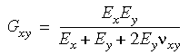 因此當您在三維空間中輸入正交性材料屬性時,必須確定不會違背上述的對稱條件。請注意,如果您未輸入剪力模數的數值,則程式將使用下列公式的關係計算其值: