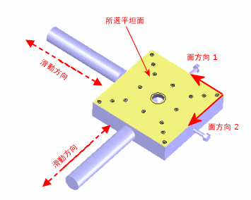 所選平坦面 (黃色部分) 可沿著面方向 1及面方向 2 滑動。執行此條件時,應將正向運動設為零。