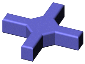 刪除及貼補。 從曲面本體或實體中刪除一個面,並自動貼補及修剪本體。