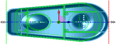 若要移動修剪平面,請在修剪平面上移動游標以顯示 游標,然後拖曳平面。 您也可以在 PropertyManager 中設定伸展距離 。