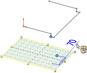 基準面上 3D 草圖中可用的各種尺寸類型有:絕對、水平和垂直。來回移動游標以產生各個尺寸類型。
