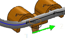 當您拖曳夾具到線路設計組合件中時,會沿著路徑點1 及路徑點2 之間的軸產生路線。因此,如果您的夾具包括多於兩個路徑點, 請根據線路設計意圖來定義前兩個路徑點。
