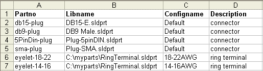 此處為一個有六個零組件的 Excel 檔案的範例。